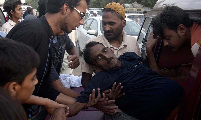 | People rush a man to a hospital as he suffers from a heatstroke in Karachi.-AP/File |